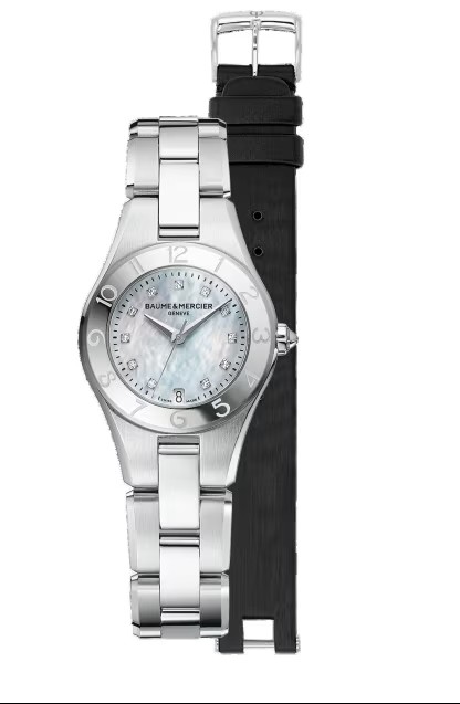 フェミニンかつクリエイティブな径27mmのこのLineaウォッチは、控えめなコリマソン仕上げを施し、ダイヤモンドのインデックスをあしらったジュエリーのような天然マザー・オブ・パール文字盤を備え、着用者の手首を美しく彩り、個性を際立たせてくれます。このスティール製モデルには、独自の特徴としてベゼルにアラビア数字がエングレーヴィングされています。また、内部にはスイス製のクォーツムーブメントを搭載しています。文字盤の6時位置にはシンプルな日付表示が配置されています。このLineaモデルはブレスレットを交換できる画期的なシステムを備えており、着用者の好みに合わせた柔軟なカスタマイズが可能です。ミニマルなデザインで女性らしい魅力を放つこのタイムピースには、ポリッシュ仕上げとサテン仕上げのメタルブレスレットが付いています。さらに、時計のボックスには予備としてブラックのサテンストラップが付属します。