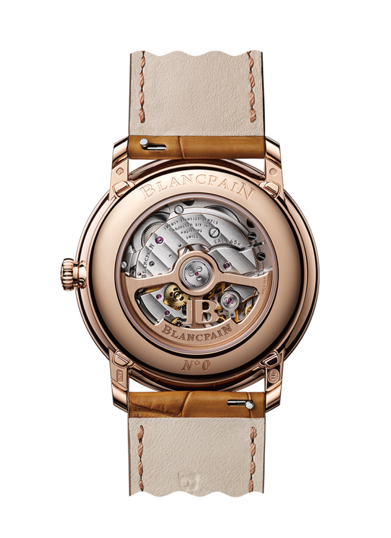 複雑なカレンダー機構を確実に保護するため、キャリバー6654が搭載されており、指で押すだけで操作できるブランパンの特許技術アンダーラグ・コレクターを用い、カレンダー表示をいつでも調整することができます。
