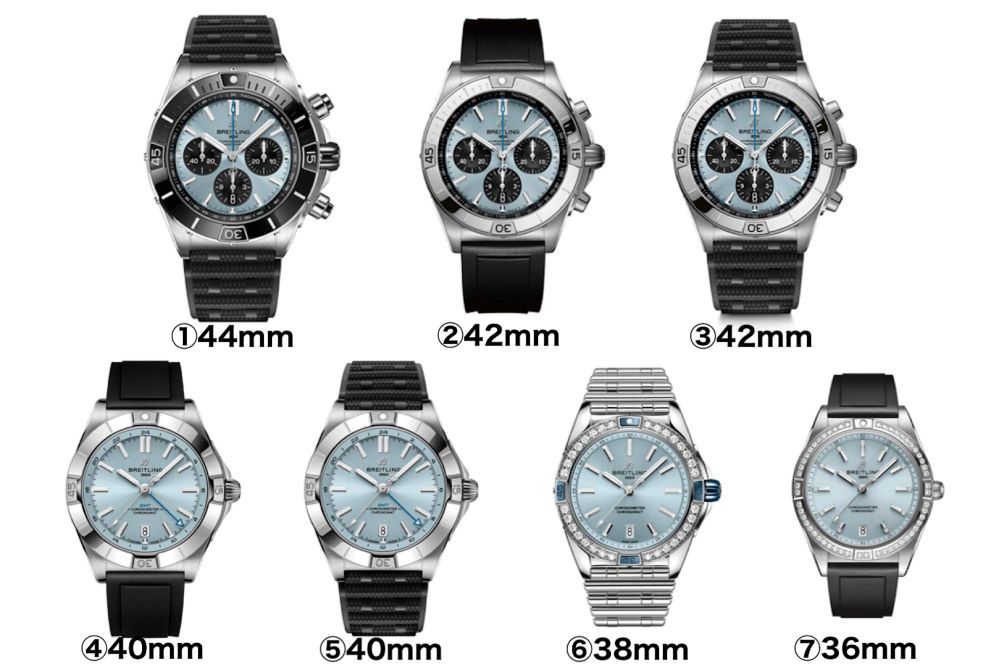ケース径:44mm パワーリザーブ:約70時間(自動巻/B01搭載)②クロノマット B01 42 アイスブルー×ブラック文字盤 プラチナベゼル