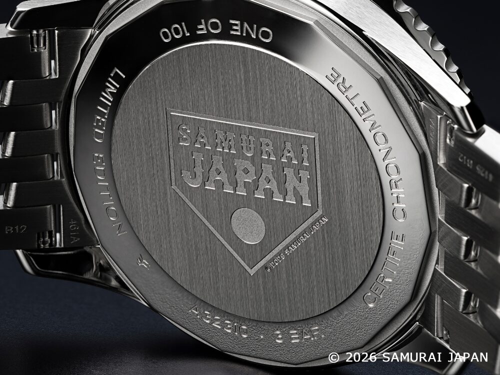裏蓋には侍ジャパンのエンブレムが誇り高く刻印されており、所有者だけが知る特別感を演出します。