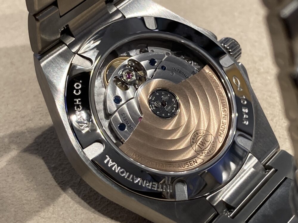 軟鉄製インナーケースを抜いた分、ムーブメントの動きを直接鑑賞できる楽しさがプラスされました。「耐磁性」よりも「機械美」を選んだこのモデルは、まさにラグジュアリースポーツとしてのインヂュニアの完成形のひとつと言えるでしょう。
