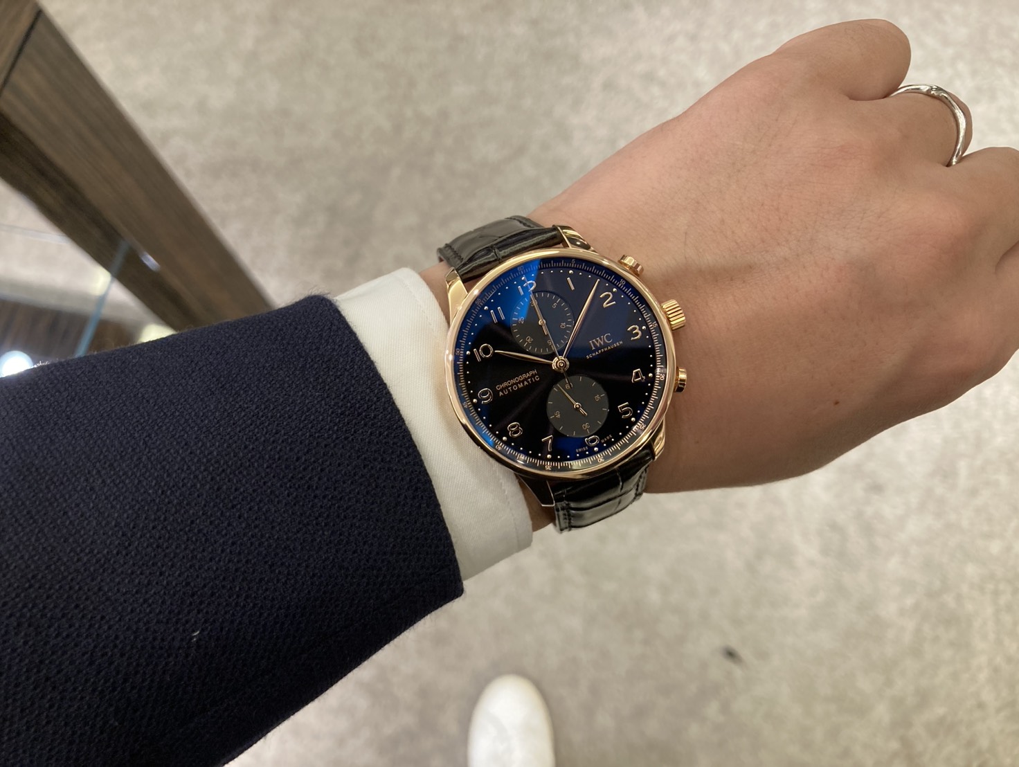 ポルトギーゼ・クロノグラフは、そのデザインの完成度の高さから、ステンレススチールでも十分に魅力的です。しかし、ゴールドケースを選ぶことで、その魅力は「高級実用時計」から「エレガントなドレスウォッチ」へと昇華されます。