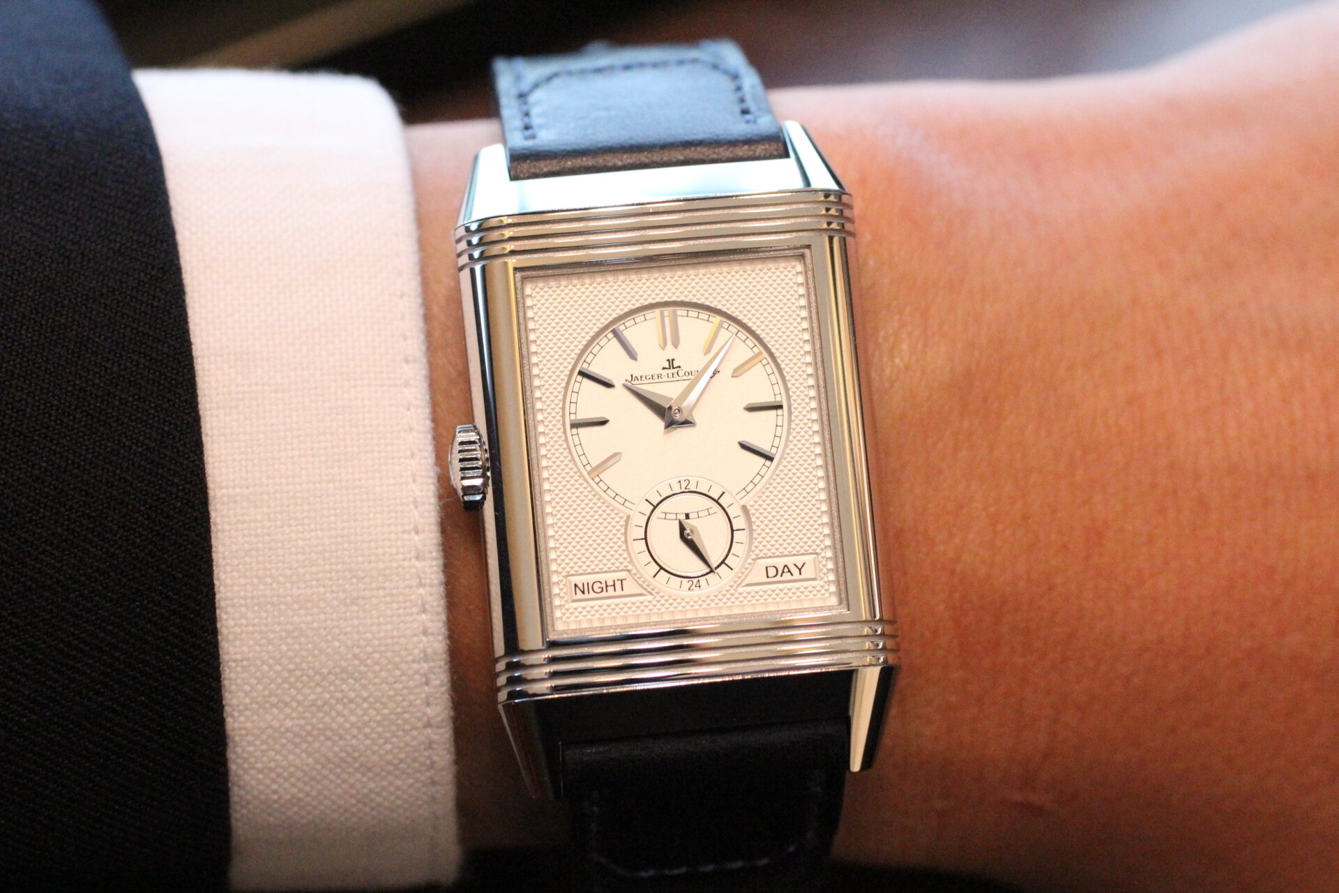 “レベルソはケースがひっくり返る腕時計で、表面と裏面で顔を二つ持っています。老舗ブランドだからこそできる技術であり、レベルソがジャガールクルトの代表モデルである理由です。”どちらもビジネスシーンで使いやすいカラーリングなのも嬉しいです。
