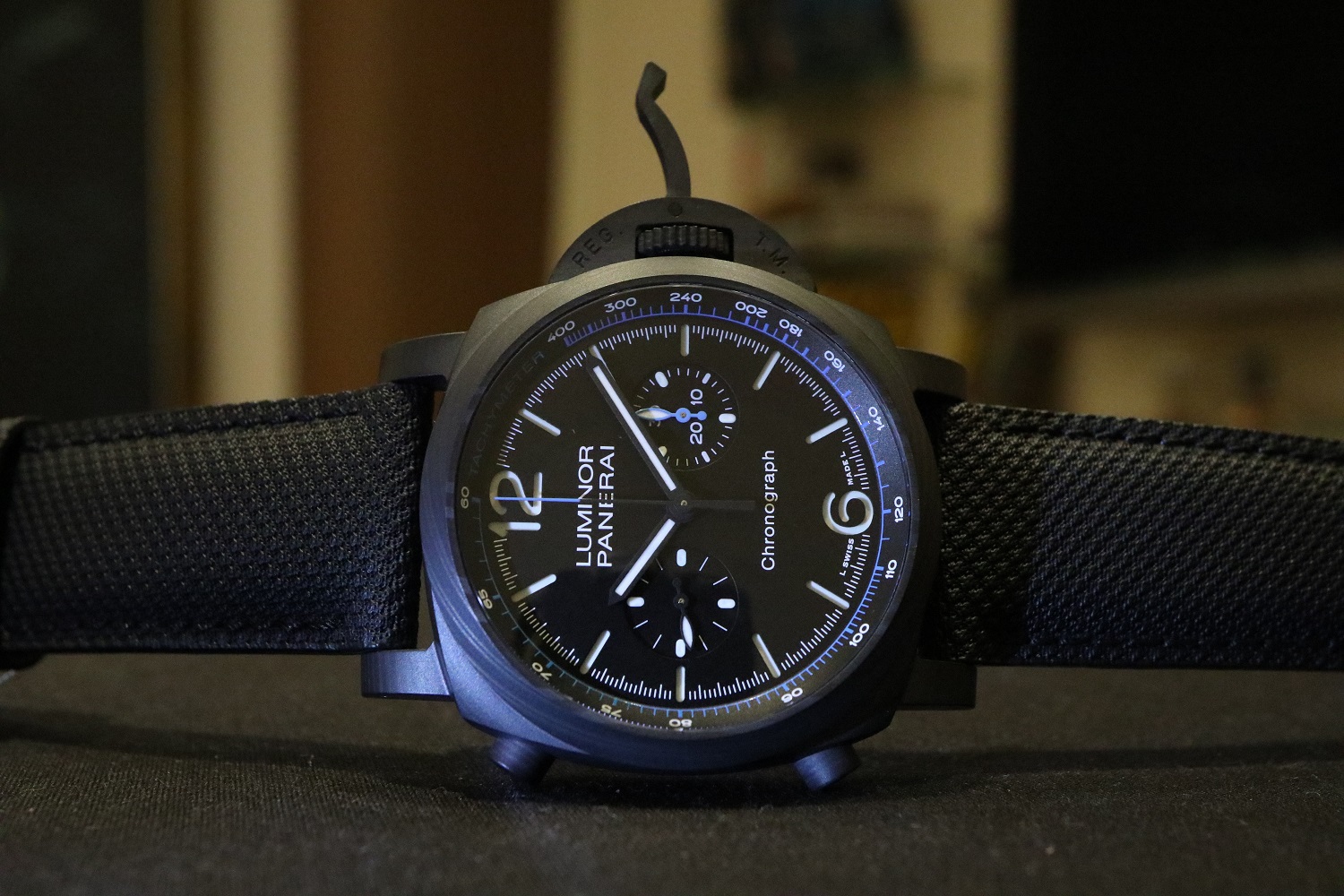 パネライ ルミノール クロノ PAM01219は、パネライ独自のハイテク素材「カーボテック」を採用し、