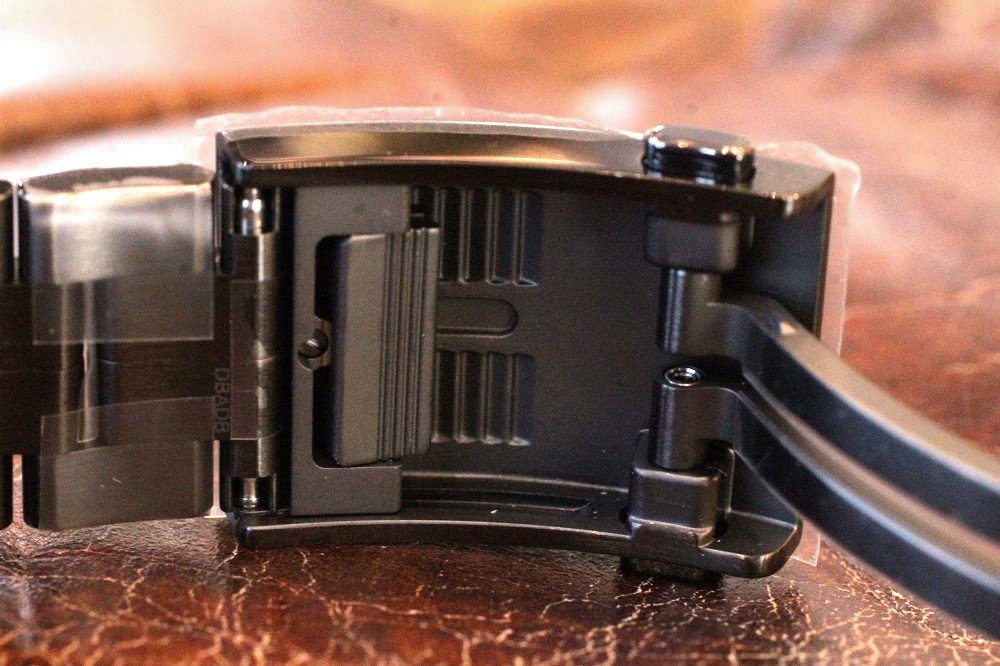 今回のモデルはケース、ブレスレットなど全ての外装パーツがDLCコーティングの特別仕様です。