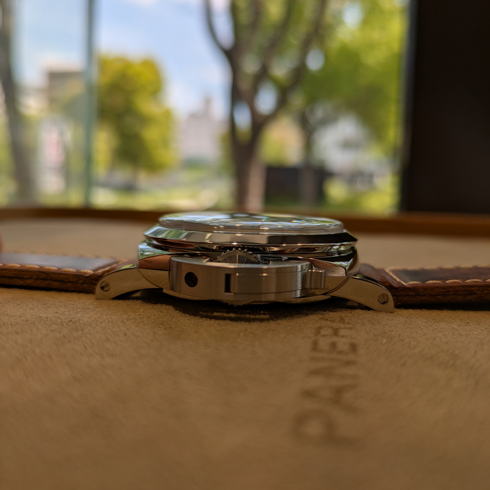 ケースはパネライの象徴である44mmのAISI 316L ステンレススチールを採用。