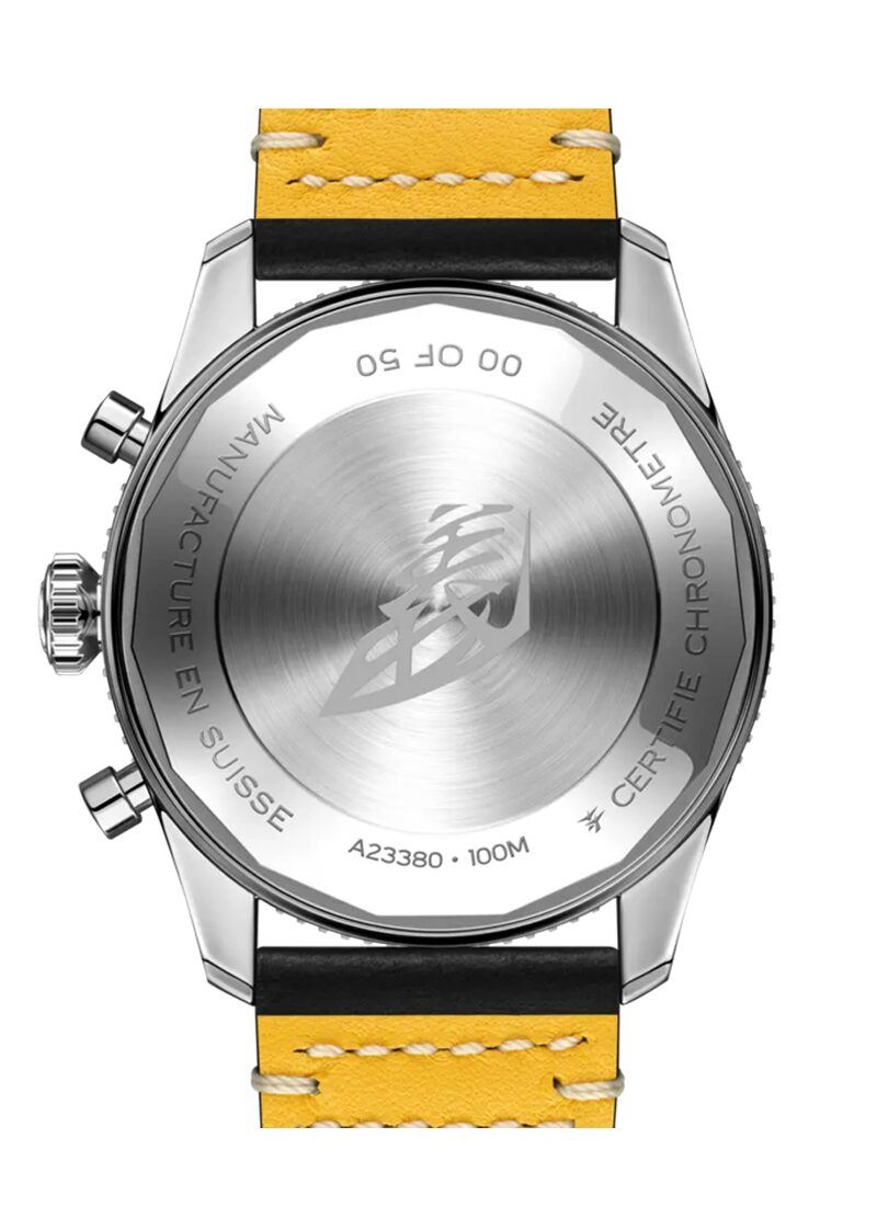 勇敢な初飛行から民間航空機による旅行の誕生まで、ブライトリングの歴史は航空機の歴史と切っても切れない間柄です。1930年代、ブライトリングのユイット・アビエーション部門は、精密なコックピット時計を発明し、その名を轟かせました。20年後、腕に装備する飛行計器として世に送り出したのが、Ref. 765 アヴィ。現在のクラシック アヴィは、黎明期に空に挑んだアヴィエーター達のたくましい精神にインスパイアされたコレクションです。 クラシック アヴィ クロノグラフ 42 ヨシ・ムロヤ リミテッド エディションは、日本を代表するエアレース・パイロット、室屋義秀と彼を支えるファンに捧げるモデルです。エアレース機で採用される褐色(かちいろ)に通ずる濃いブルーの文字盤をブラックのインダイヤルで引き締めました。大きく読みやすいアラビア数字をダイヤルとベゼルに採用し、赤いクロノグラフ秒針で際立った視認性を確保しています。42 mmのケースのベゼルには刻みが加えられ、パイロットが手袋をしたままであっても最適なグリップ感を得ることができます。ケースバックには「義」のエンブレムと、限定本数を示す「ONE OF 50」を刻印。このモデルが、侍パイロットの矜持を秘めたモデルであることを物語っています。ステッチを効かせたカーフスキンストラップはまたは特徴的な斜めのコマを採用したメタルブレスレットのいずれかを選択可能。パイロットウォッチの歴史と現代のアビエーション・ヒーローへの敬意を凝縮したクロノグラフです。