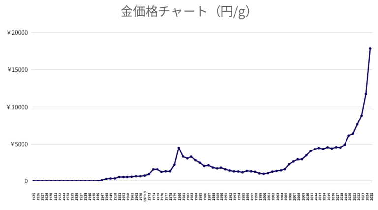 2024年のはじめには10,000円(/g)程だった金の価格が