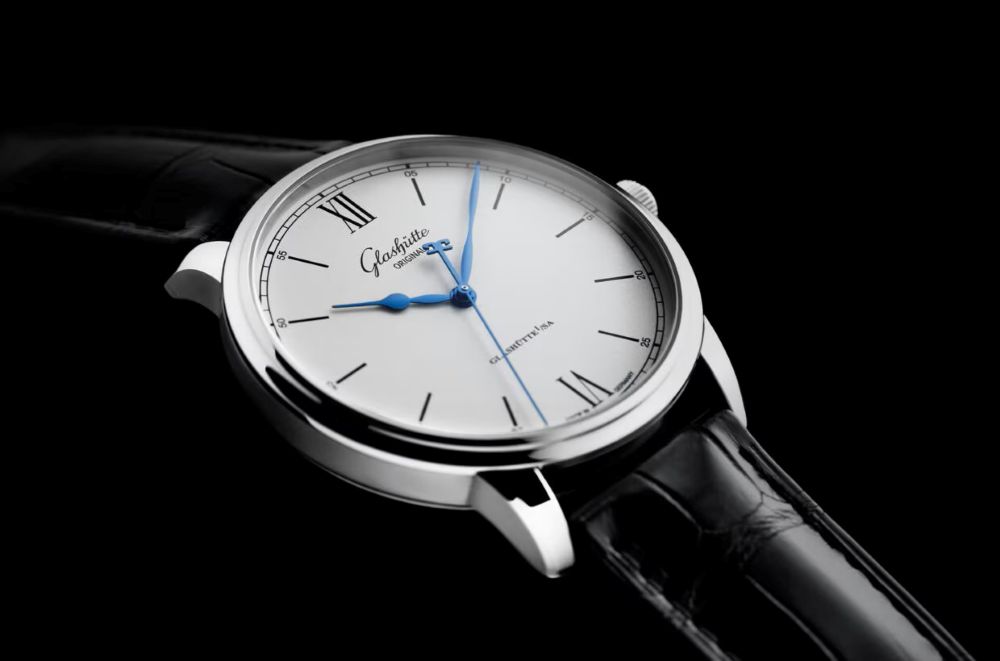 このミニマルなデザインのウォッチは直径40mmのステンレススティールケースモデルで、シンプルかつエレガントなデザインが印象的です。ポリッシュ/サテン仕上げのケースは光沢が美しく、細かい溝が刻まれたリューズにはグラスヒュッテ・オリジナルを象徴するダブルGのロゴがあしらわれています。さらに、ブラックのルイジアナ産アリゲーターストラップが手首にぴったりフィットします。