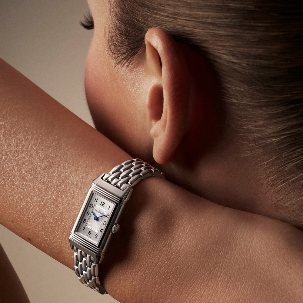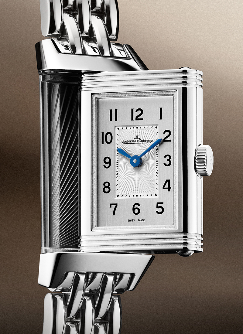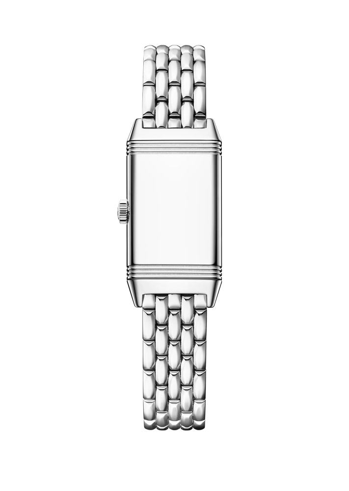 930年代、メゾンが発表した初の女性用レベルソからインスピレーションを授かったレベルソ・クラシック・オリジンは、磨き抜かれたシンプルなデザインが魅了的なタイムピースです。青焼きのドーフィン針がモノカラーダイヤルの背景に映える表ダイヤルには、ギョーシェ彫り装飾と縦方向に走るブラッシュ仕上げのダブル仕上げが施され、ダイヤル中央にはミニッツトラックと時を告げるアラビア数字が配され、レベルソを象徴するアールデコ装飾のデザインコードと相まって、美しい調和を織りなしています。モダンな趣きを醸し出すステンレススチール製のケースには、ゴドロン装飾様式を象徴する3本ラインが裏と表の両面にあしらわれています。裏面は、エングレービングやラッカーによるパーソナライズでこのアイコンウォッチを唯一無二の一本と高められるよう、無地のキャンバスとなっております。統一感を醸し出すステンレススチール製のリンクブレスレットが、時を超えてエレガンスを紡ぐタイムピースの魅力を際立てています。
