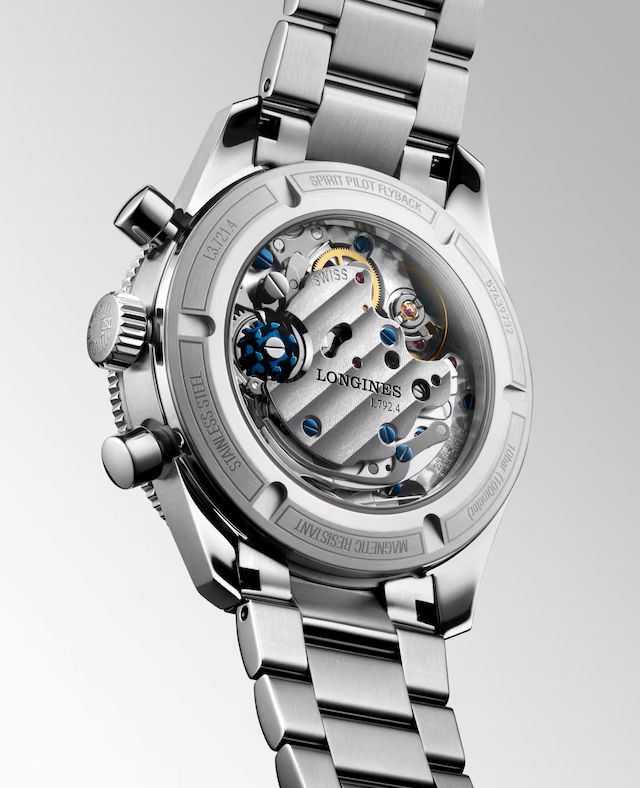 「ロンジン スピリット パイロット フライバック」コレクションは、ロンジンの絶え間ない革新への情熱を表現しています。フライバック機能を搭載したクロノグラフは、この分野におけるロンジンの先駆的な専門技術が生きています。翼を持つ砂時計をブランドロゴとするロンジンは、1930年代初頭にフライバック機能を搭載した最初のモデルを発表し、1936年6月16日にはその製造技術における特許を取得するという世界初の偉業を達成しました。パイロットのための革新的ツールとして設計されたフライバック・コンプリケーションは、連続した飛行段階の計時を可能にし、航行効率を大幅に向上させました。「ロンジン スピリット パイロット フライバック」の精度の高さは、シリコン製ヒゲゼンマイを搭載し、耐磁性を備えたロンジン独自のキャリバーによって支えられています。この手巻きムーブメントは、COSCによるクロノメーター認定を取得しています。