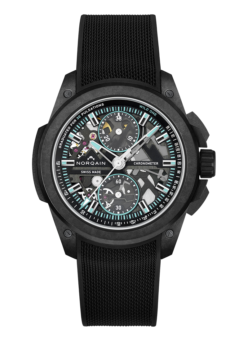 Wild ONE NHLPAは、独自開発のカーボンファイバー素材「NORTEQ-ノルテック」を使用した究極のハイパフォーマンス・スポーツウォッチです。スチールの6倍、チタンの3.5倍の軽さと200mの防水性を持ち、陸上や水中でのほぼすべてのアクティビティに対応する堅牢性を備えています。Wild ONEは、著名なジャン・クロード・ビバー氏、NORQAINチーム、そしてスイス最高のサプライヤーとのコラボレーションによってデザインされました。
