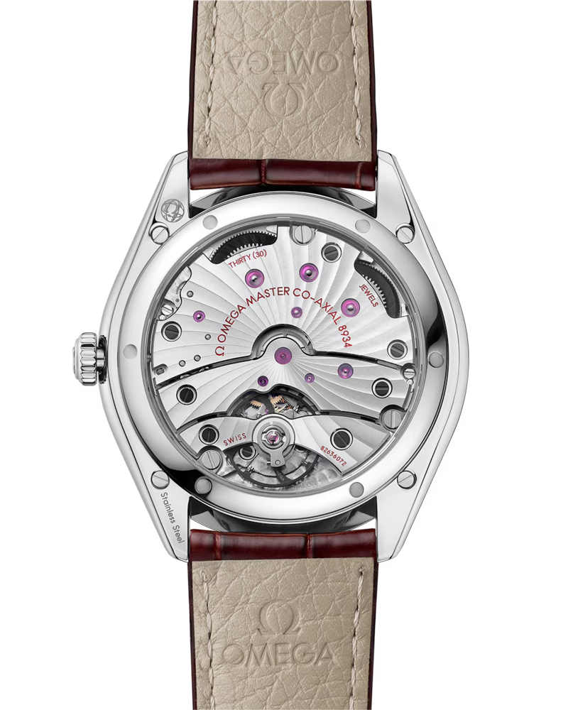 オメガ コーアクシャル マスター クロノメーター キャリバー8934搭載。時計業界で最高水準の精度と性能、耐磁性を誇るマスター クロノメーターの認定を受けています。
