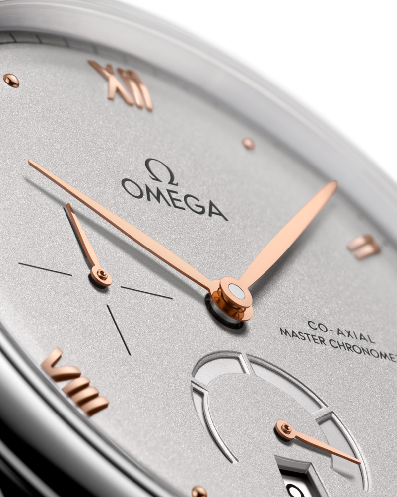 ムーブメント・仕様 コーアクシャル エスケープメント搭載の自動巻きムーブメント。 METAS認定のマスター クロノメーター。15,000ガウス以上の耐磁性能。 6時位置に日付表示およびパワーリザーブ表示、9時位置にスモールセコンド表示。 シリコン製のフリースプラングテンプ、両方向巻き上げ式ローター。 アラベスク調ジュネーブウェーブが美しいロジウムプレート加工。 キャリバーオメガ 8810 パワーリザーブ55時間