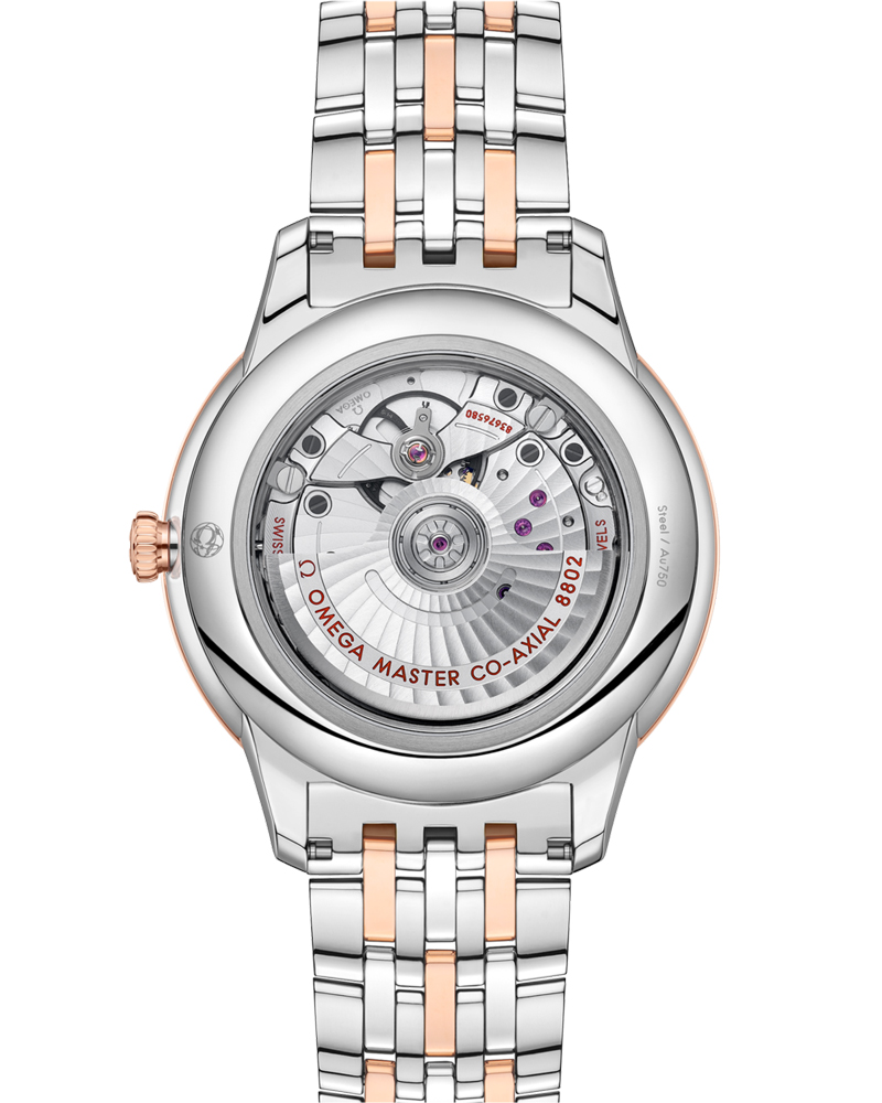 この直径41 mmのステンレススティール & 18Kセドナ™ゴールド製モデルは、クリスタル仕上げのドーム型シルバーダイアルを備えています。表示には、PVDセドナ™ ゴールド カラーの針と、交互にセットされたローマ数字とカボションカットインデックスが採用されています。