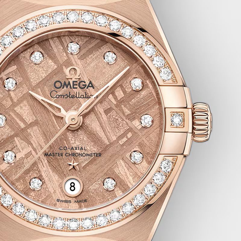 美しいダイアルは本物の鉄隕石(アイアン メテオライト)から形成され、セドナ™ゴールドのPVDコーティングが施されています。隕石がもつ模様はモデルにより異なり、ふたつとして同じダイアルは存在しません。6時位置の日付窓、ダイヤモンドのインデックスと、18Kセドナ™ゴールドの「コンステレーション」の星が、ダイアルのデザインを仕上げます。
