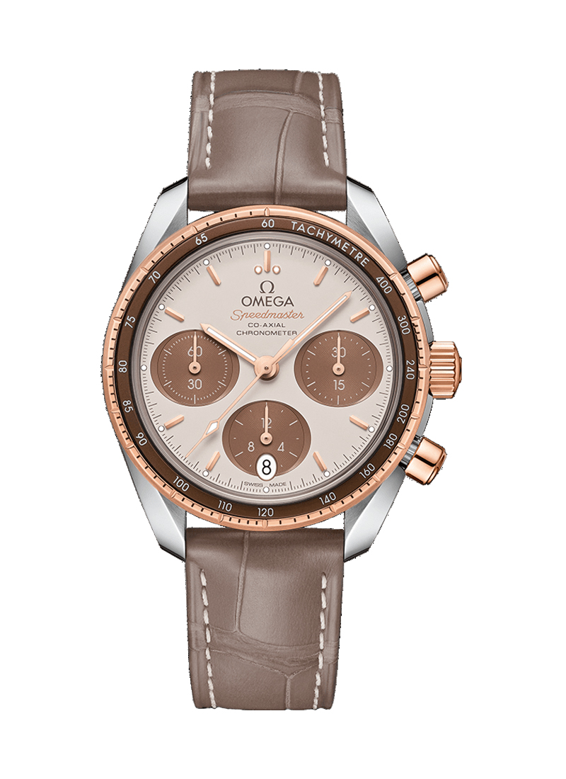 「スピードマスター 38」は、オメガを代表するクロノグラフとしてのスタイルと伝統を守り、シンプルさ、サイズ感、カラーを重視して作られたコレクションです。 全体をポリッシュ仕上げした18Kムーンシャイン™