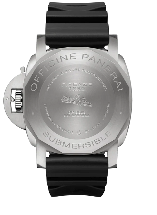 (パネライ特許)BMG-tech™。目盛りの付いた逆回転防止ベゼル文字盤