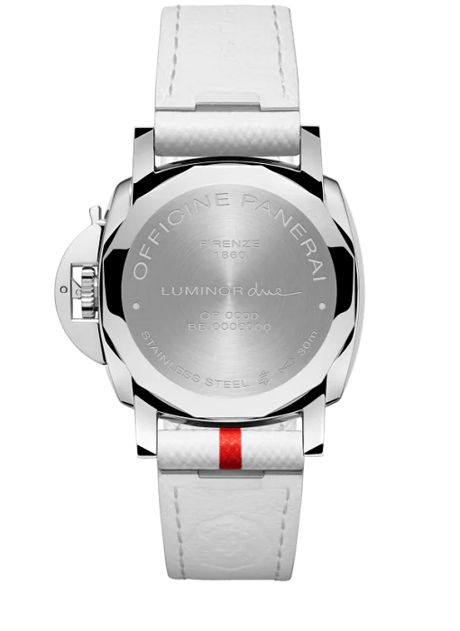 White with luminous Arabic numerals and hour markers. Date at 3 o’clock and small seconds at 9 o’clock防水機能