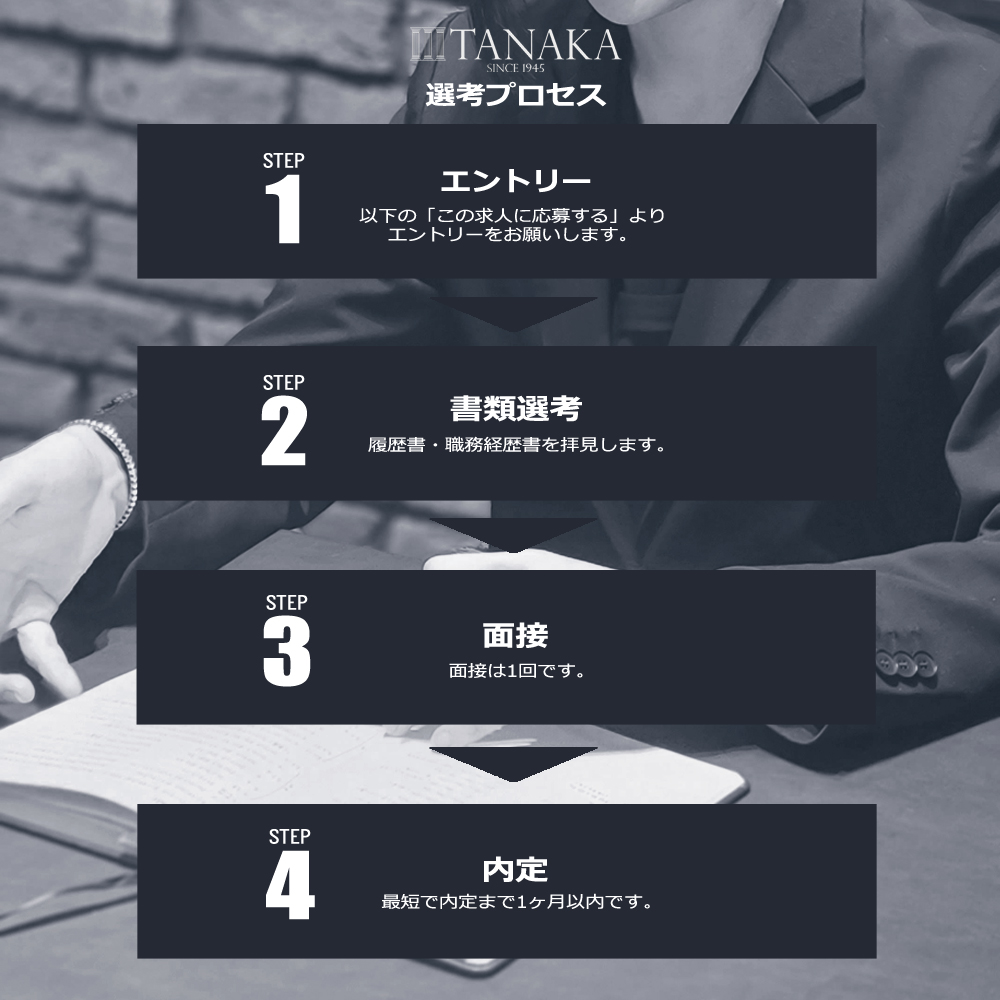 ●昇給年1回 ●賞与年2回 ●交通費全額支給 ●制服支給(オーダースーツのジャケット、パンツ)