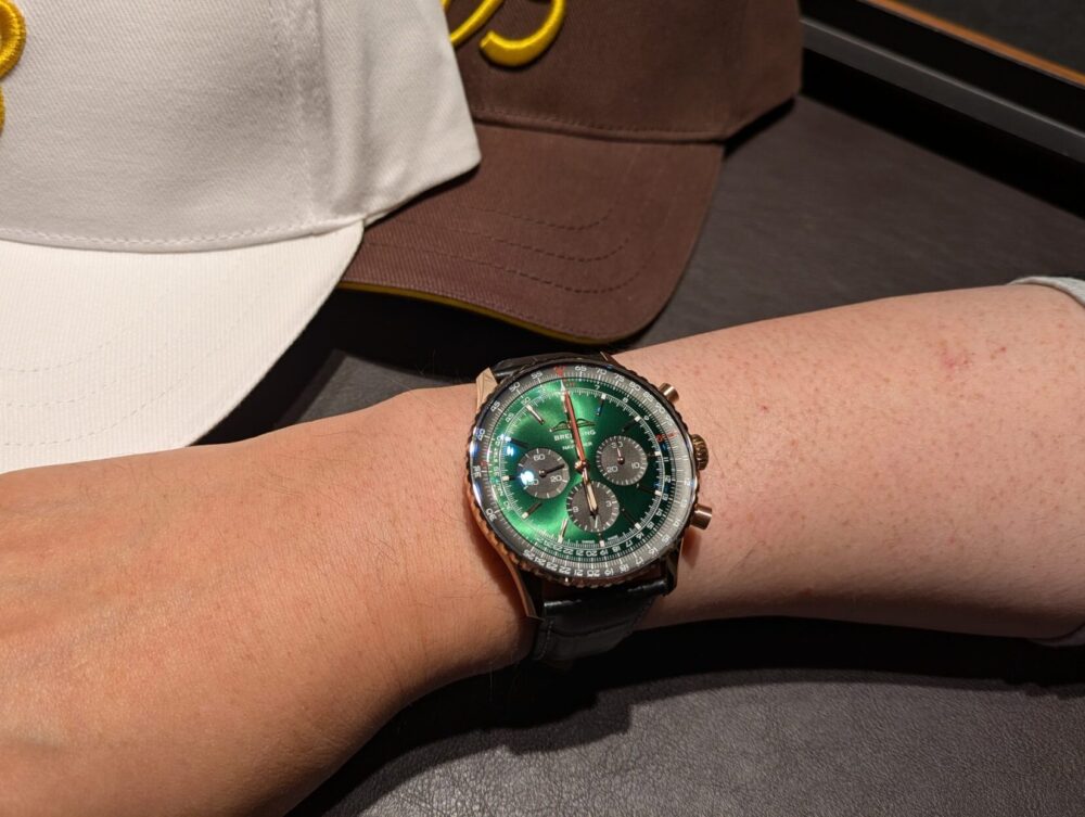 【ブライトリング】愛車に合わせたグリーンダイヤル!ナビタイマーのブティック限定モデルをお買い上げいただきました_ナビタイマー B01 クロノグラフ46_RB0137241L1P1